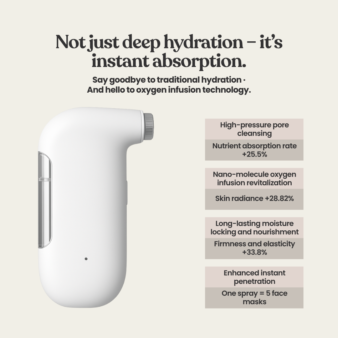 Using advanced oxygen infusion and nano-mist technology, it delivers nutrients deep into your skin for instant, visible radiance.