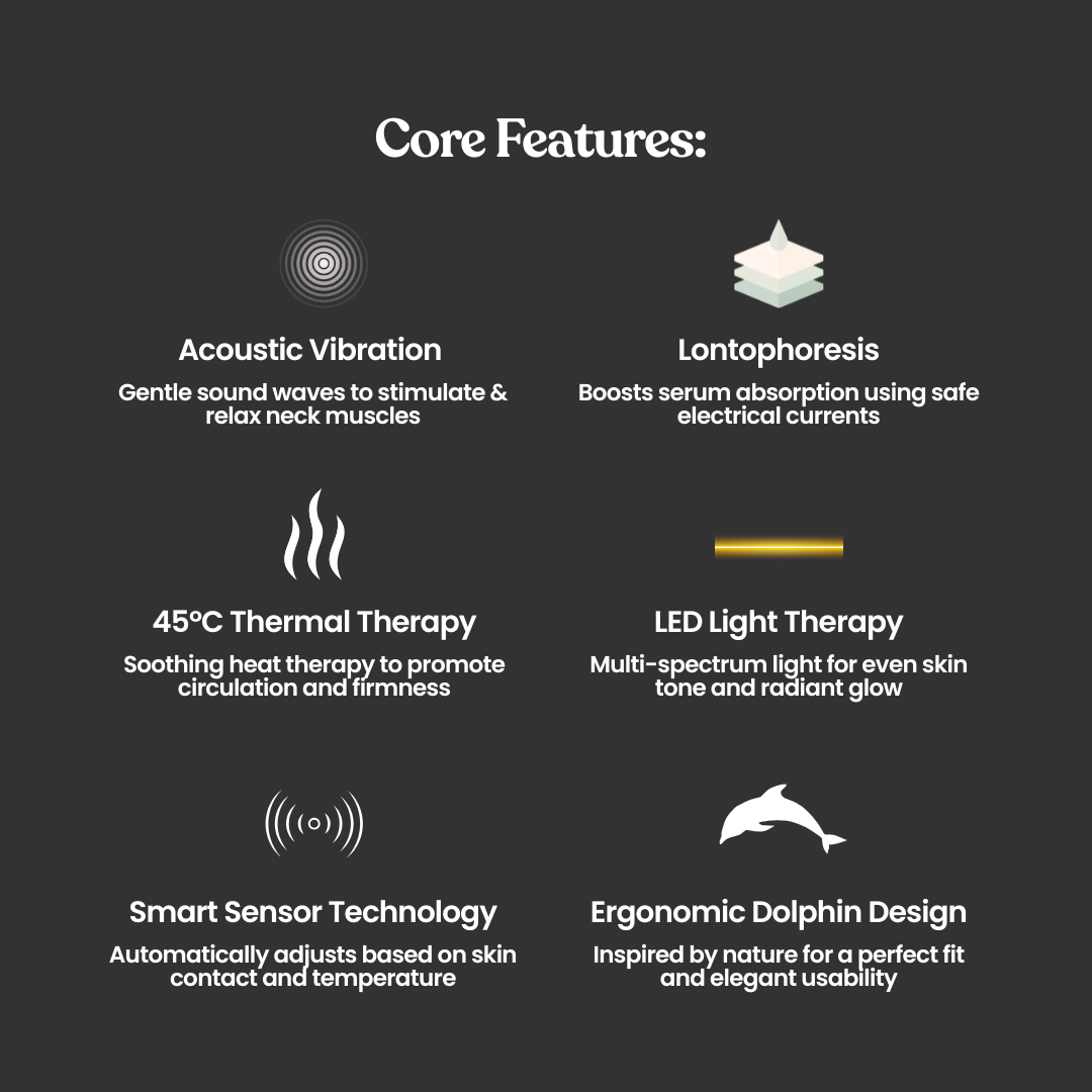 Harnessing LED light therapy, gentle heat, and smart vibration technology, Glow Pulse works to: